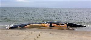 The photo on the right is of a dead 55 foot long finback whale that washed up on Norton Point in January 2005. When healthy, this whale may have weighed as musch as 55 tons. Numerous experts came from across the state to study this carcass, hoping to learn more about whale ecology and why this individual died.